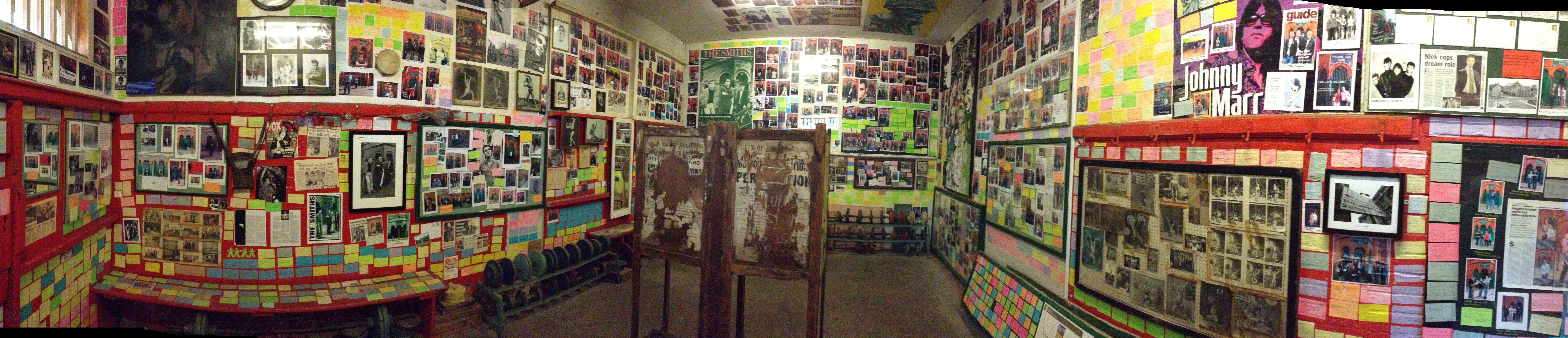 In 2003, a live BBC Radio 6 Music programme was held at the club to mark 25 years since the release of The Smiths debut single “Hand in Glove”, with a group of fans invited to the event. Leslie Holmes (our Project Manager) outlined his idea for the weightlifting room: create a space where fans could leave pictures or messages to mark their visit.